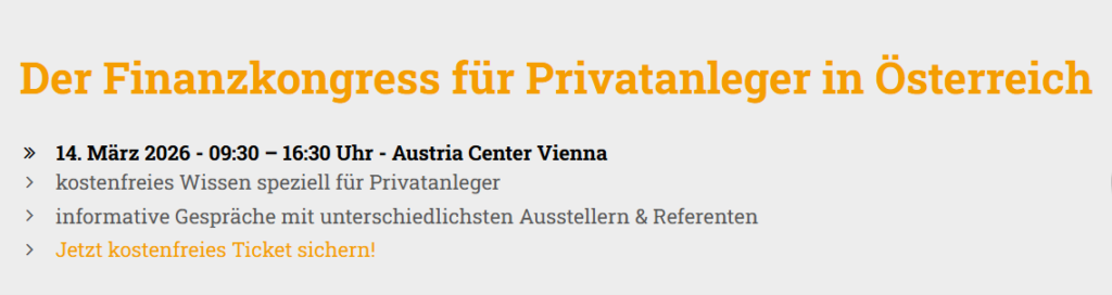 Freuen Sie sich auf ein informatives Programm im Austria Center Vienna. Die BÖAG Börsen AG ist nicht vor Ort.